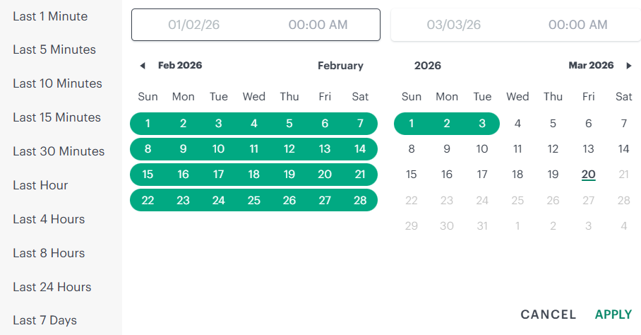 3Logs can be filtered using given preset window periods.